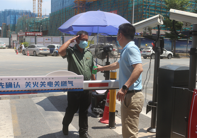 咬定青山不放松,立根原在破巖中。 千磨萬擊還堅勁,任爾東西南北風(fēng)。 ——清代鄭燮的《竹石》 炎炎酷暑,疫情再起,鴻運物業(yè)保安員們站出崗?fù)ぃ斨邷仳灤a排查,用“咬定青山不放松”的精神,堅決踐行防疫措施;用“千磨萬擊還堅勁”的定力,堅守小區(qū)“安全門”。7月26日上午,鴻運物業(yè)總經(jīng)理陳喜祥、黨支部書記陳文遠(yuǎn),同高層代表、黨員代表,前往鴻運物業(yè)服務(wù)的小區(qū),慰問一線保安員們。總經(jīng)理陳喜祥為保安員們送上飲料,一聲聲“辛苦了”道出對保安員工作的肯定和感謝。陳總要求各物業(yè)服務(wù)中心備齊解暑應(yīng)急藥品,定期開展“送清涼”活動,讓員工在辛勤的工作中感受到公司的關(guān)懷。鴻運物業(yè)黨支部書記陳文遠(yuǎn)與保安員握手交談,叮囑其多喝水、注意防暑,并切身感受其工作環(huán)境,和黨員代表們一同提出改良建議。在麒麟花園,我們遇到了黨員志愿者,陳文遠(yuǎn)書記對黨員志愿者的支持表示感謝。在人流量較大的沙頭舊村卡口,我們見到了保安員耐心指引無法打開健康碼的居民,保證卡口暢通不擁堵;在鴻德園卡口,我們見到了保安員為沒有佩戴口罩的老人送上口罩;在盛芳園卡口,我們見到了保安員耐心與外賣員溝通,為其解釋新下達的外賣員快遞員不能進入小區(qū)的規(guī)定;在麒麟花園卡口,我們見到了保安員奔跑到烈日下,細(xì)致查驗車中人員的健康碼……因部分物業(yè)服務(wù)中心需協(xié)助處理居民核酸采樣,為不影響正常工作,未能一一前往慰問,在此向全體鴻運人道一聲“辛苦了”!